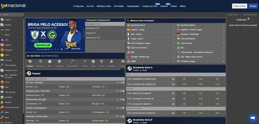 A Betnacional tem uma plataforma até padrão em seu design e disposição de informações, mas a quantidade de eventos e mercados nos jogos de futebol brasileiro é destacável.